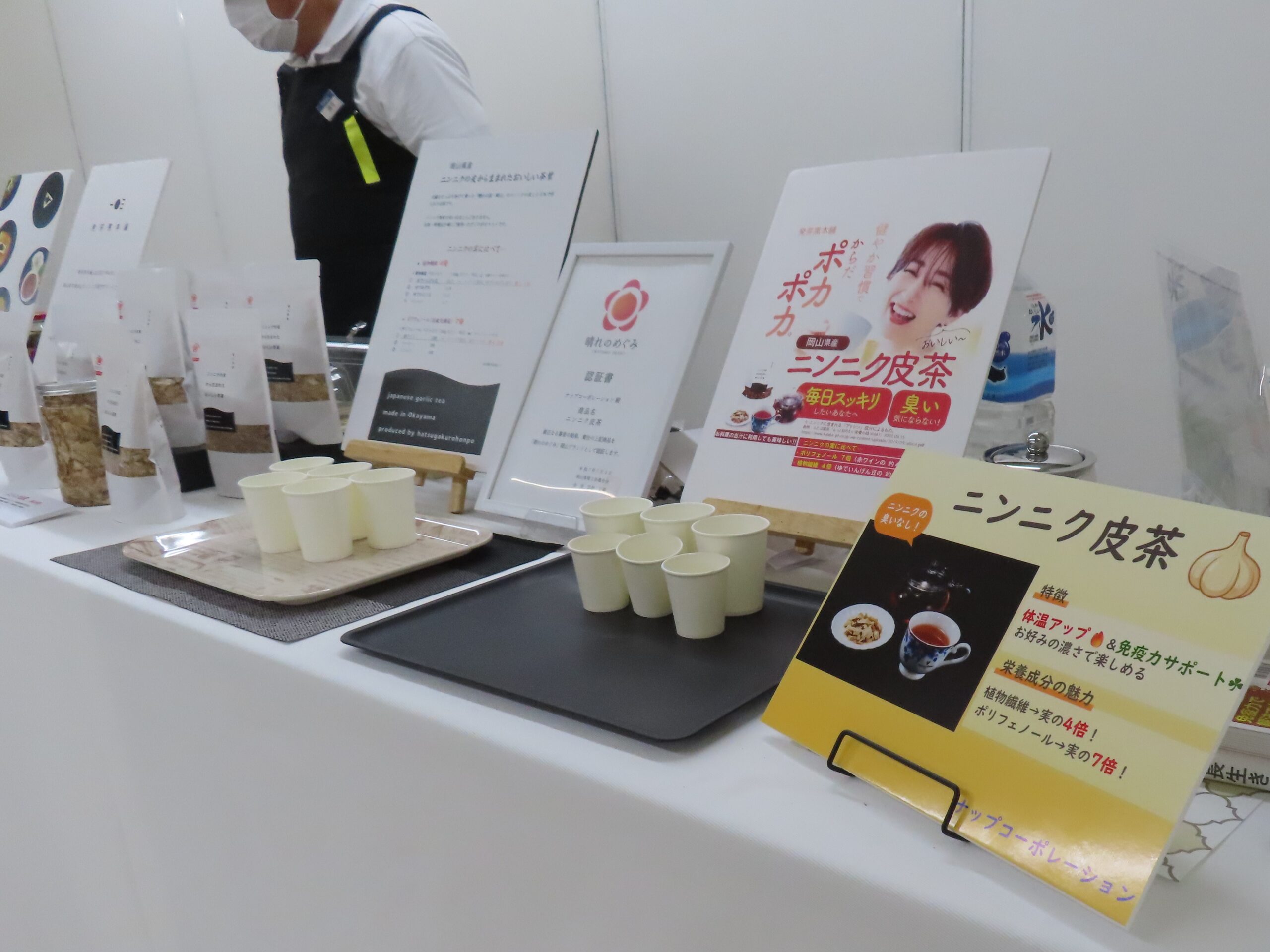 特に今年度は、「ニンニク皮茶」の「晴れのめぐみ」岡山ブランドへの認定をいただきました。岡山県商工会連合会が発刊するバイヤー向け加工食品カタログへの次年度版への掲載、商工会マルシェの出展、食と雑貨の展示商談会へ参加予定もあり、販路開拓事業を利用させてもらっています。